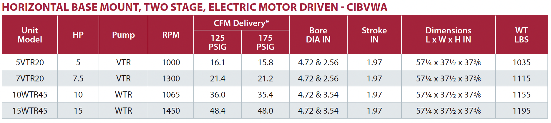 15.8 à 48 P.C.M (CFM) à 175 L.P.C