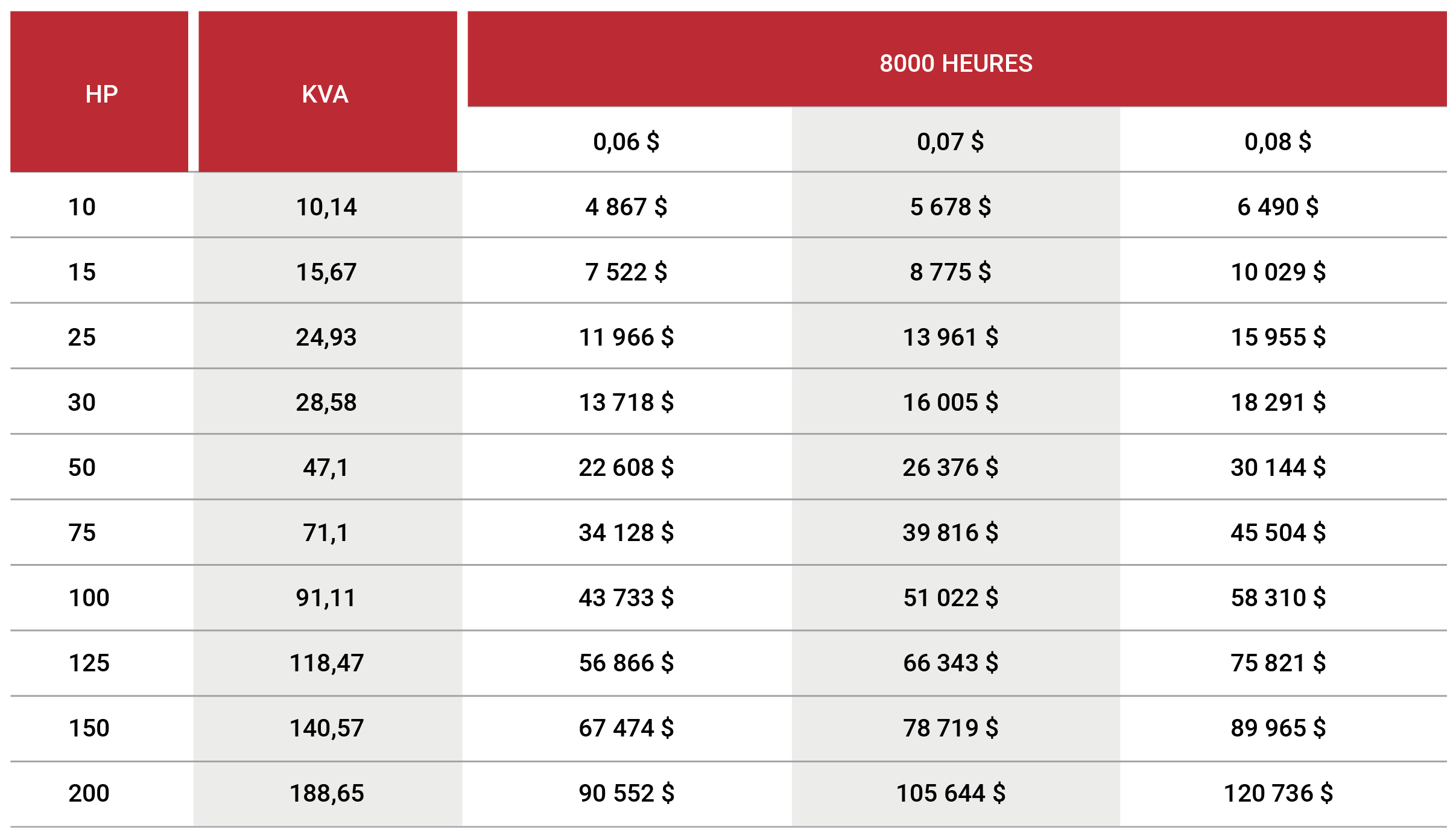 Coût d'opération Coût d'opérationCoût d'opération pour "x" nombre d'heures à 0,06, 0,07 et 0,08 $ pour 2000h, 5000h et 8000h Pour 2000 heures Pour 5000 heures Pour 8000 heures